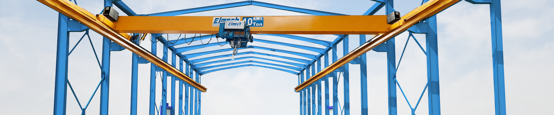 Elmech Cranes & Components is a leading Manufacturer of Single Girder EOT Crane with New Generation Low Head room Wire Rope hoist